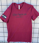 Fort Morgan printed on the front of a Maroon Bella + Canvas Tshirt with a black and white Colorado Flag on the Sleeve! This one is designed with our simple shirt lovers in mind!